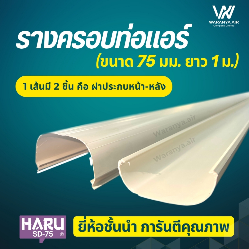 รางครอบท่อแอร์ รางครอบ ขนาด 75 มม. ยาว 1 เมตร ยี่ห้อ HARU รุ่น SD-75 หนา เหนียว อย่างดี