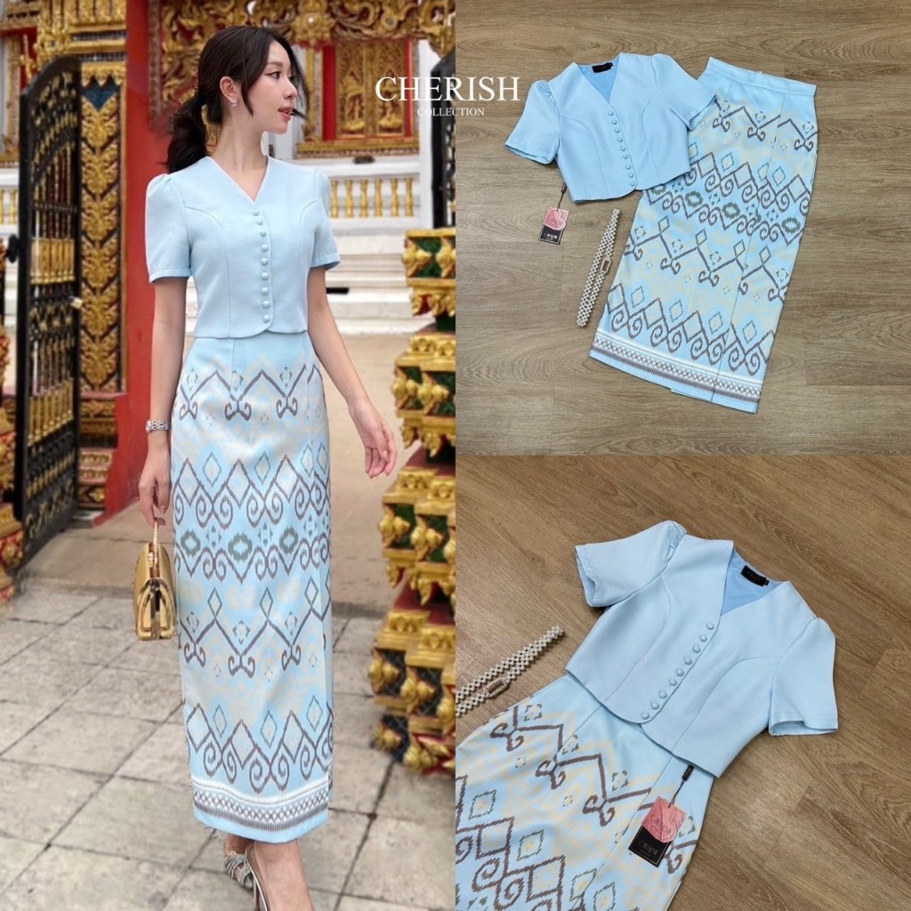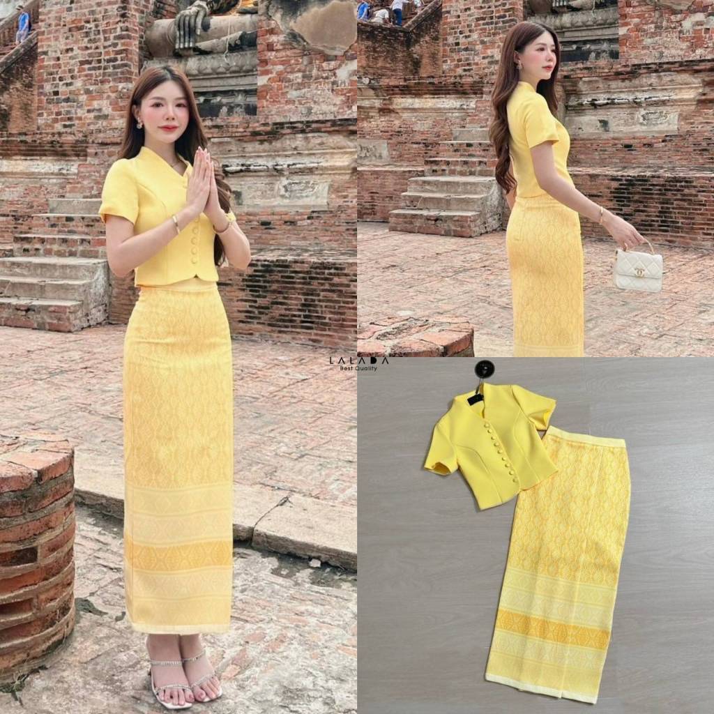❣️พร้อมส่ง📌 ชุดไทย เสื้อ ผ้าถุงสำเร็จ สีฟ้า สีชมพู เหลือง ใส่ออกงาน งานบุญ งานบวช แฟนนาค PS.CLOSET