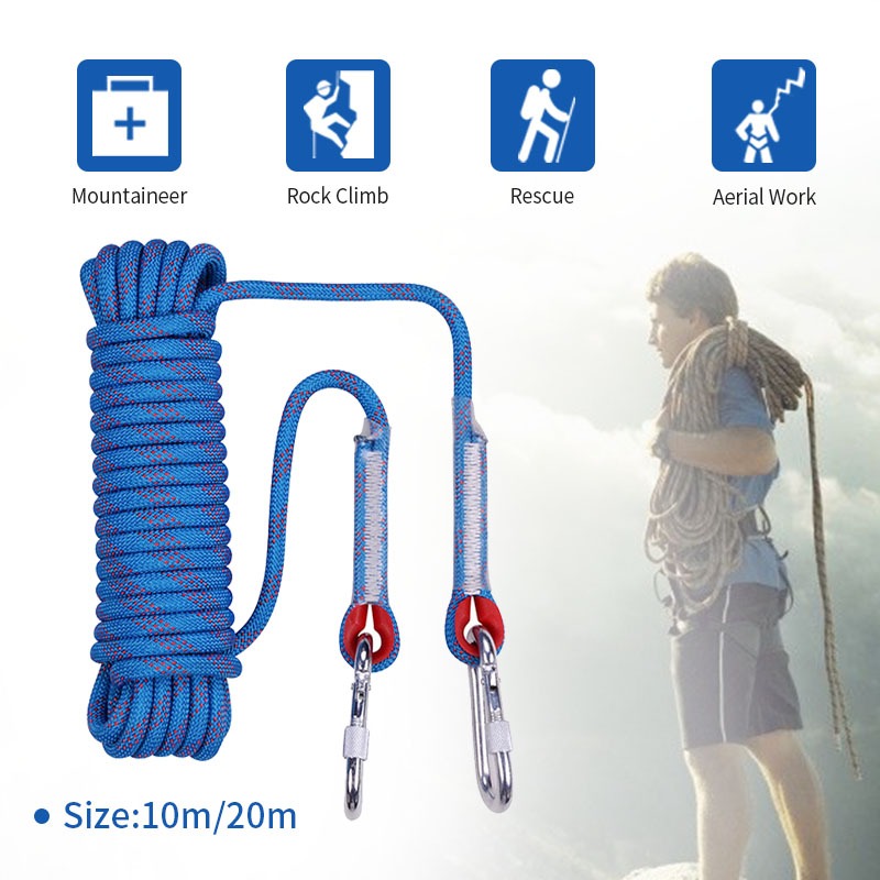 เชือกปีนเขา อุปกรณ์ปีนเขา เชือกโรยตัว 10 มม. ปีนหน้าผากลางแจ้งหลบหนีเชือก Climbing Rope เชือกไนล่อน