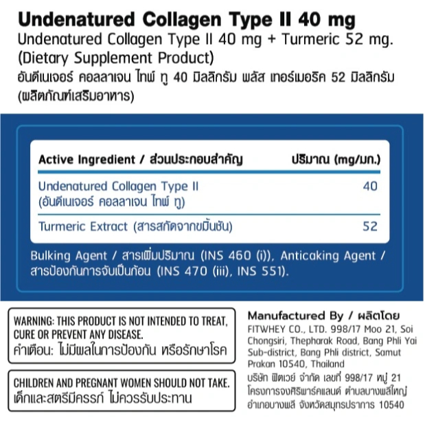 FITWHEY COLLAGEN TYPE II + TURMERIC (30 CAPSULES) | คอลลาเจน + สารสกัดขมิ้นชัน