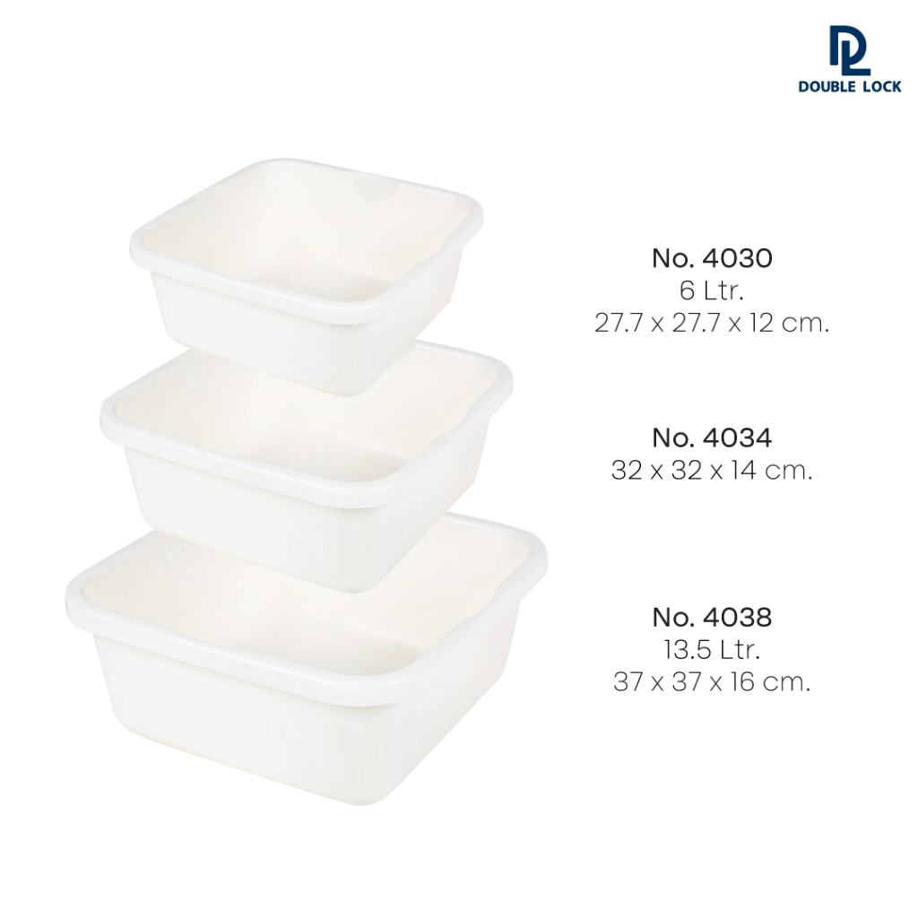 Double Lock กะละมังซักผ้า กะละมัง ทรงเหลี่ยม พลาสติกเนื้อหนา ความจุ 9 ลิตร รุ่น 4030,4034.4038