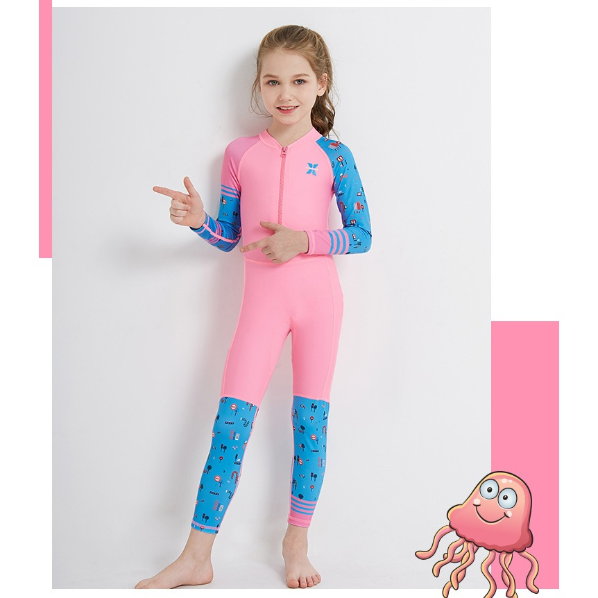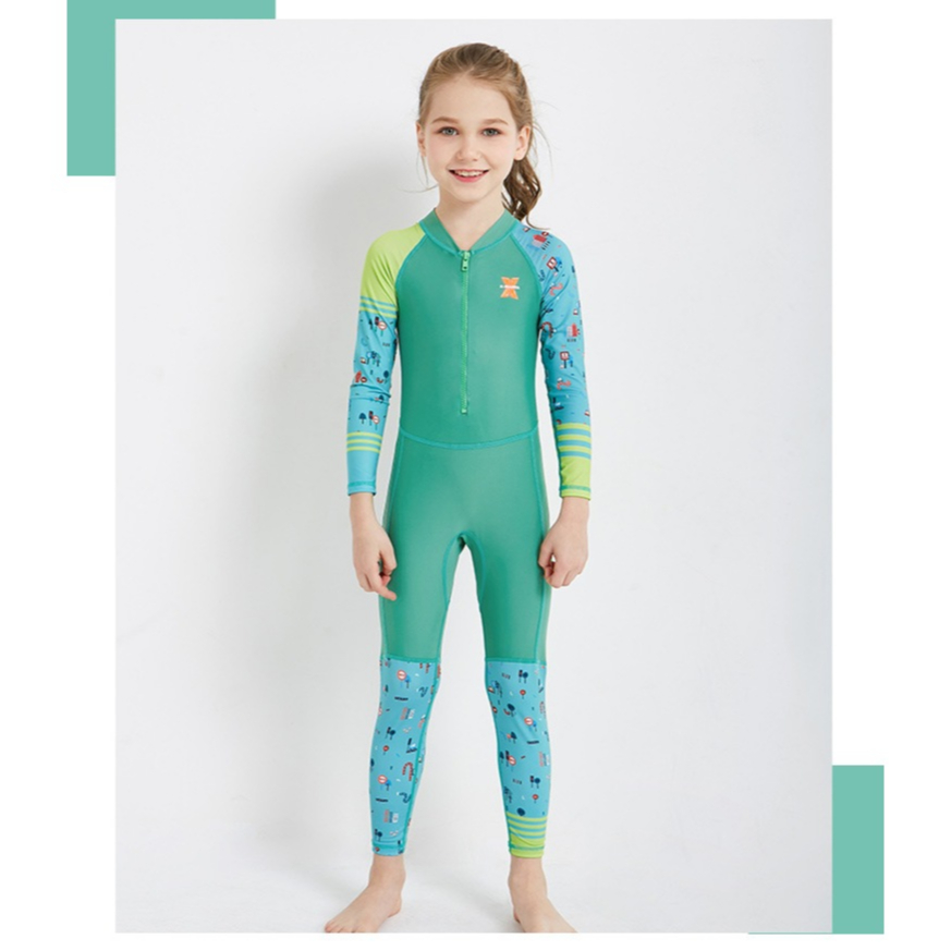 Dive & Sail ชุดว่ายน้ำเด็ก ป้องกันแสงแดด UPF50+ บอดี้สูทเต็มตัว ซิปหน้าใส่ง่าย ผ้านุ่มลื่นใส่สบาย [2F]
