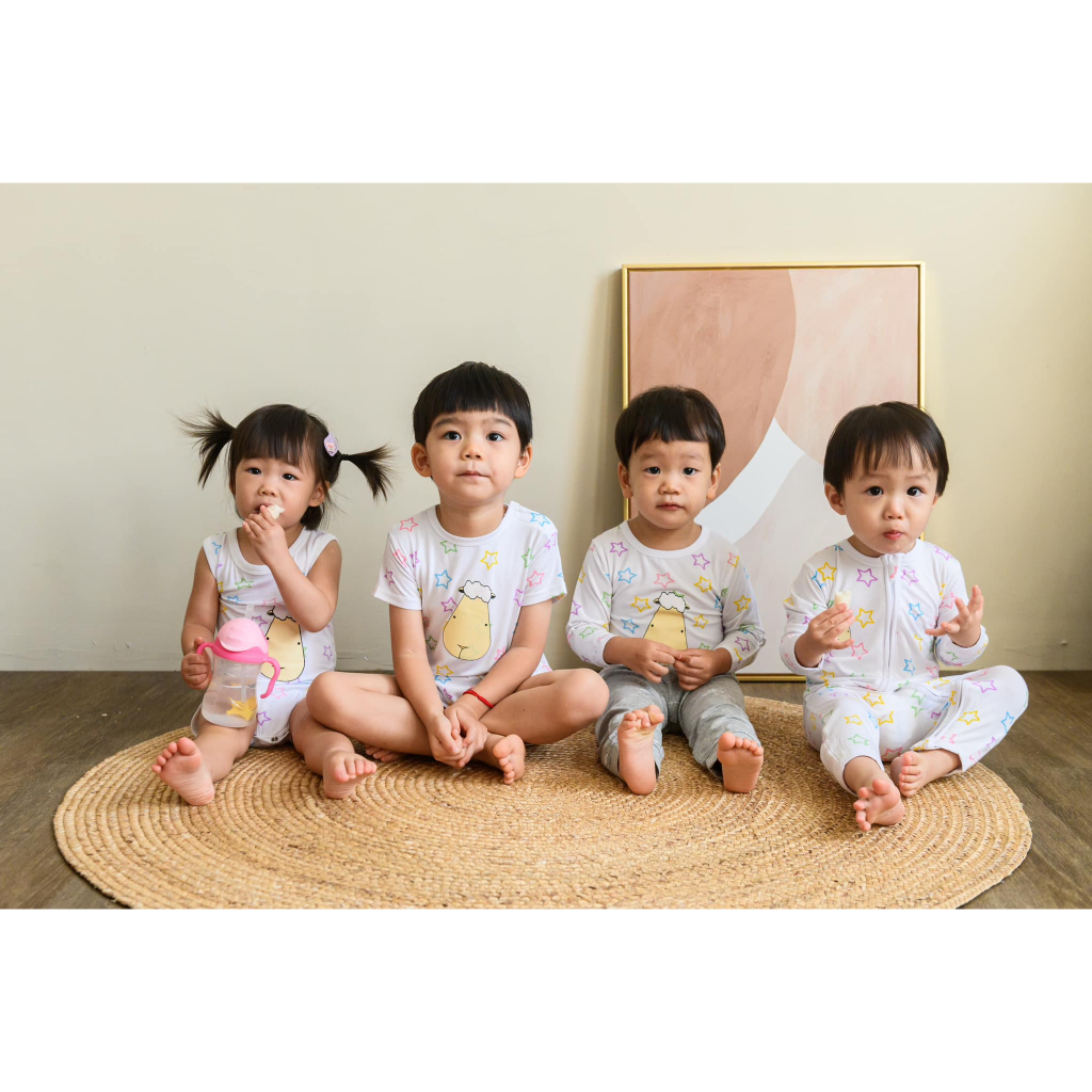 baa baa sheepz ชุดหมีเด็ก แขนยาวขายาวซิปหน้า ผ้าใย่ไผ่Plus นุ่มสบายสุด ลาย Colourful Star ไซส์ 0-24เดือน บอดี้สูทเด็ก