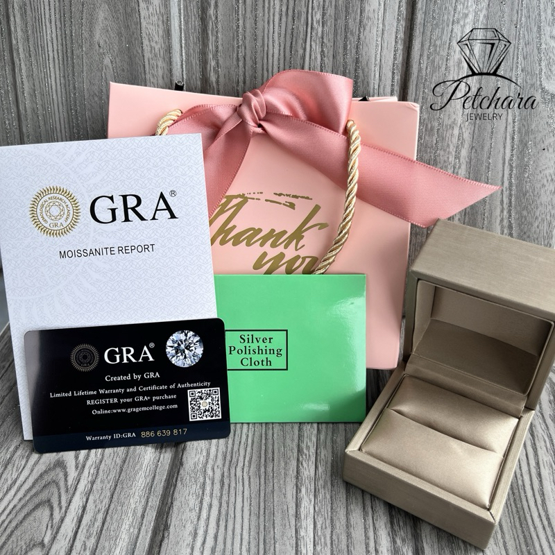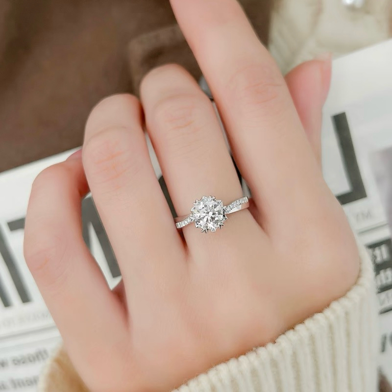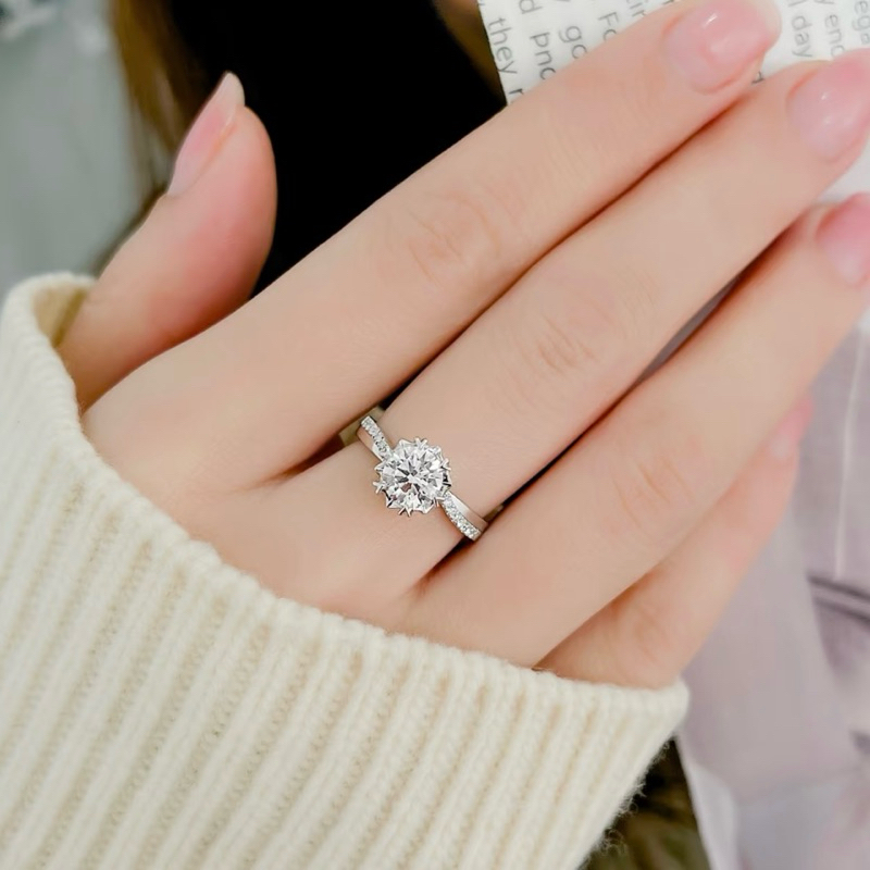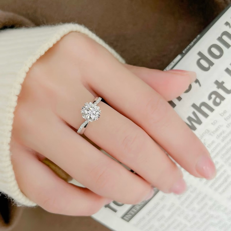แหวนเพชรโมอีส 1 กะรัต ฝังหนามรูปหัวใจ ตัวเรือนบ่าไขว้ เงิน92.5% ชุบทองคำขาว พร้อมใบเซอร์