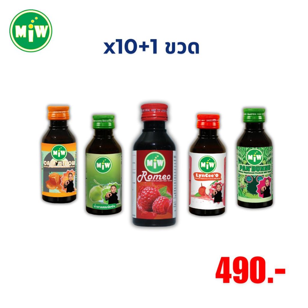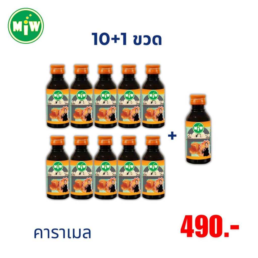 10+1 ขวด 490 บาท [ใหม่] Miw มิว น้ำหวาน น้ำตาลสด ราสเบอร์รี่ ใบเตย คาราเมล ลิ้นจี่