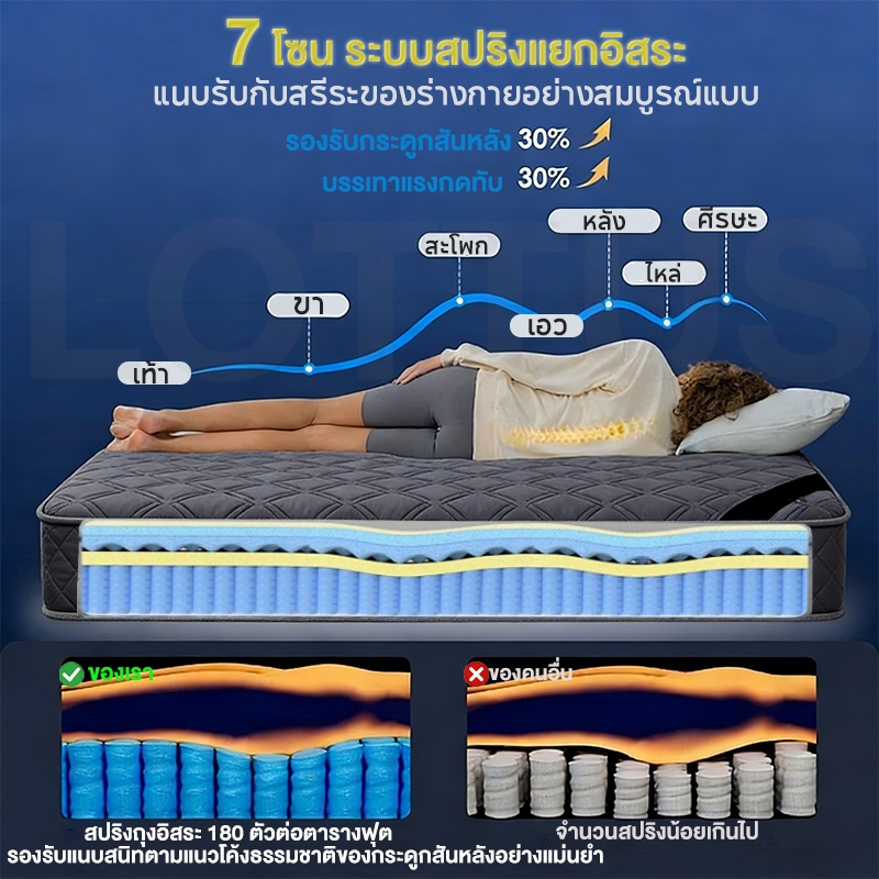 [ส่งฟรี] LOTTUS ที่นอนสปริง หนา8นิ้ว สีขาว/สีเทา ขนาด 4ฟุต/5ฟุต/6ฟุต เพื่อสุขภาพ แข็งแรงทนทาน รองรับสรีระได้ดีไม่รบกวนคน