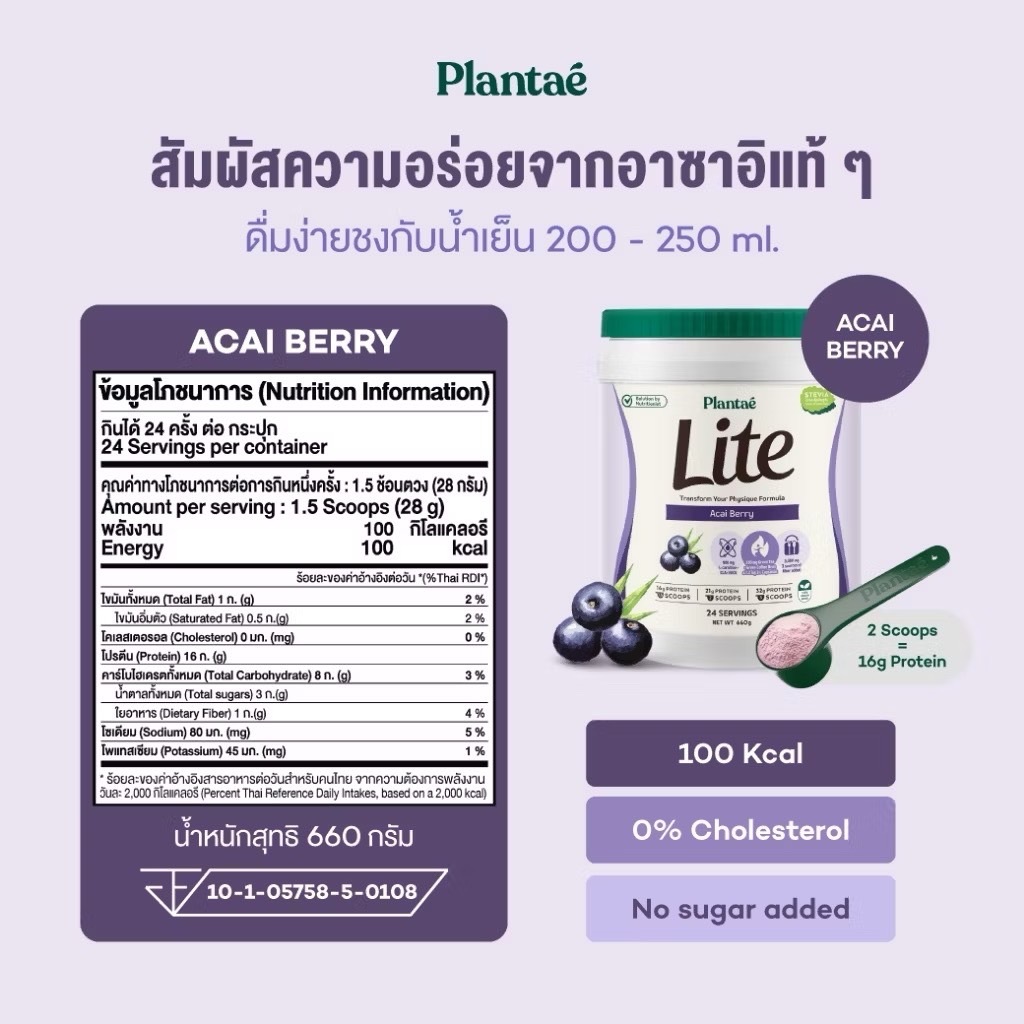 Plantae Lite Protein ขนาด 660g โปรตีนพืช ล็อคหิว L-Carnitine แอลคาร์นิทีน Capsaicin Green teaเผาผลาญ