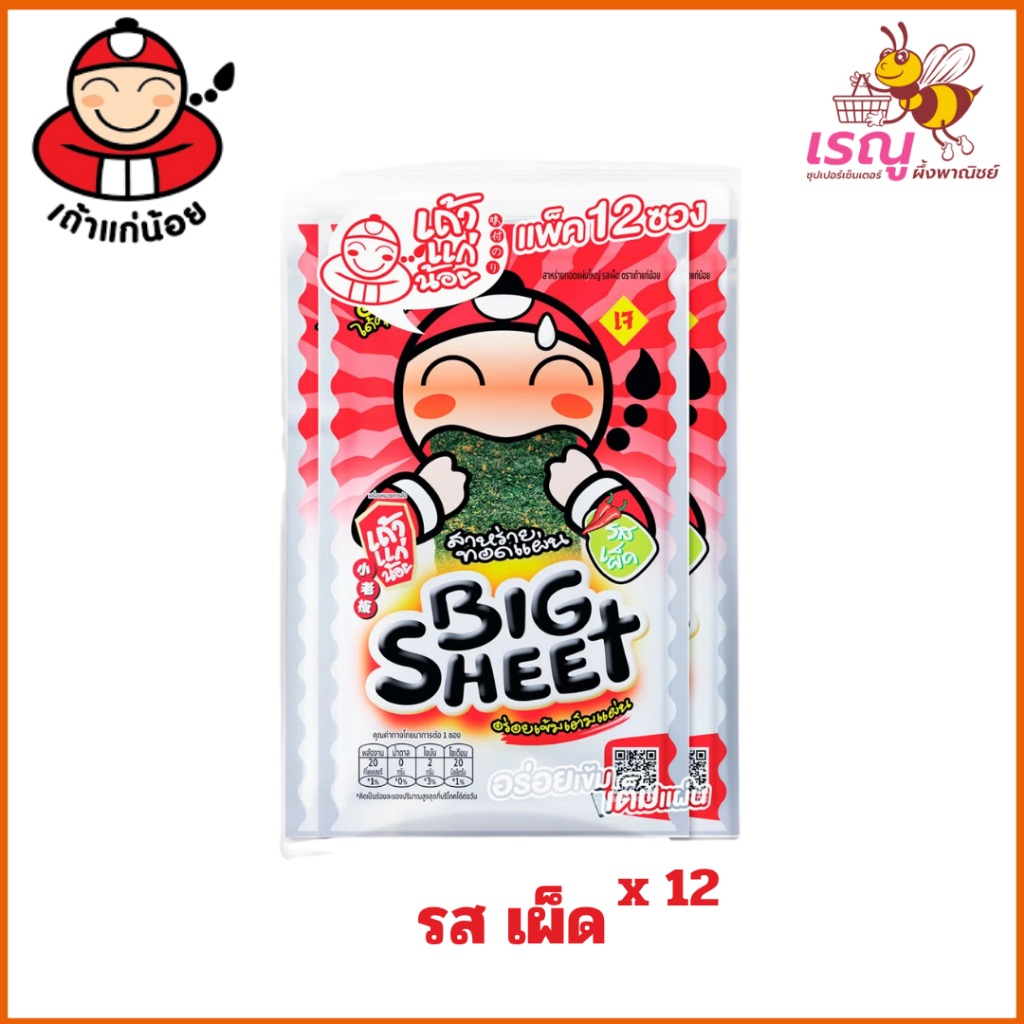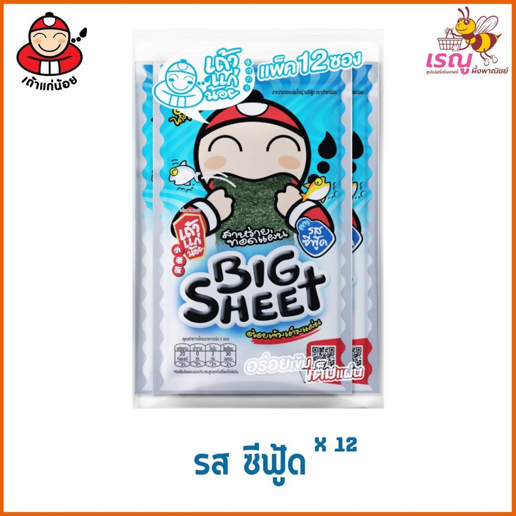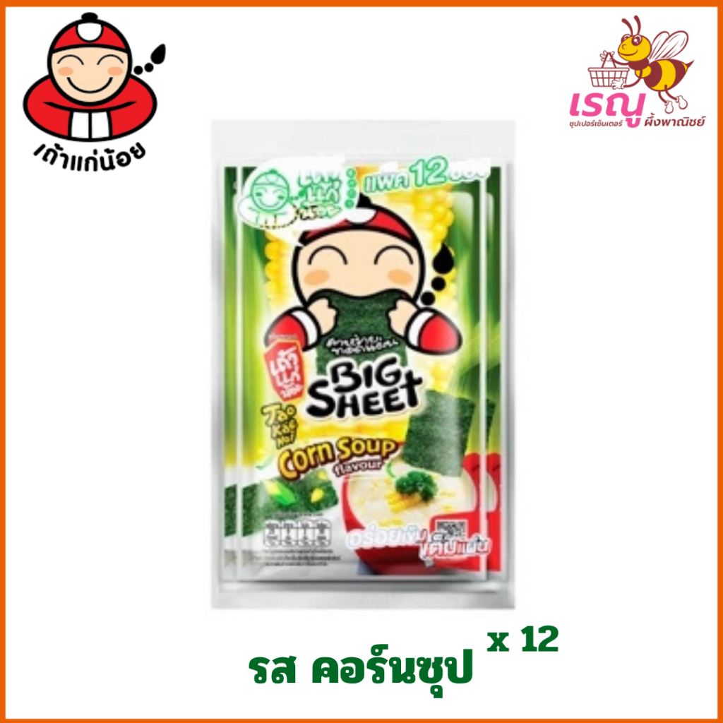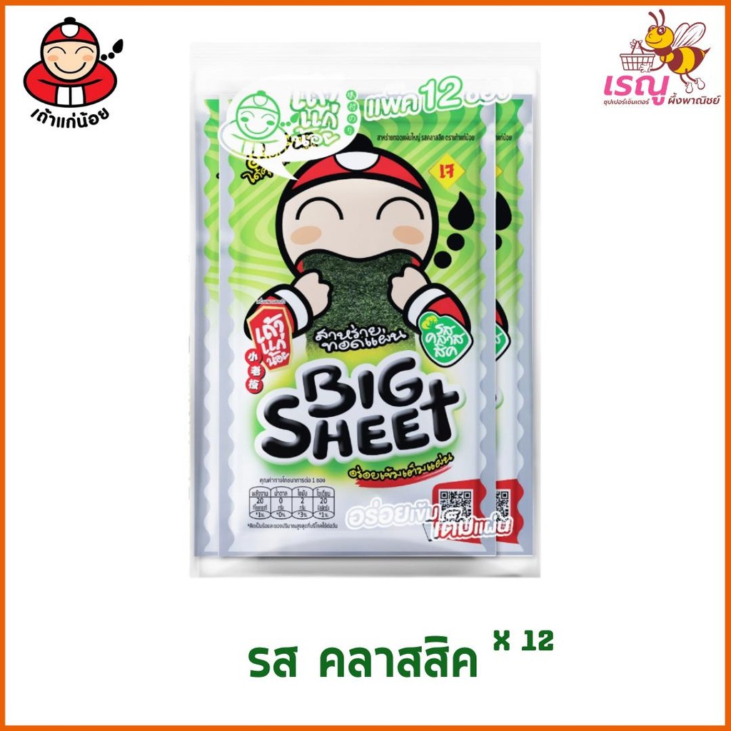 เถ้าแก่น้อย สาหร่ายทอดปรุงรส แผ่นใหญ่ 2 รสชาติ 3.2 ก. x 12 ชิ้น