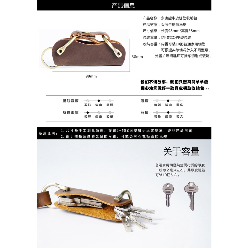 กระเป๋าใส่กุญแจหนังแท้ผู้ชายผู้หญิงพวงกุญแจสร้างสรรค์ความจุขนาดใหญ่กระเป๋าสตางค์กุญแจ หนังวัว แม่บ้านกรณีที่สําคัญผู้ถือกุญแจรถ