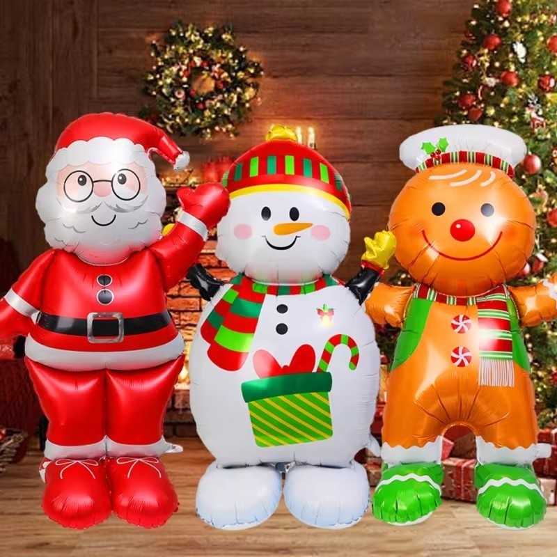 ลูกโป่งรูปตุ๊กตาหิมะซานต้าคลอสขนาดใหญ่ / อุปกรณ์ตกแต่งงานปาร์ตี้ลูกโป่งฟอยล์เป่าลมคริสต์มาส