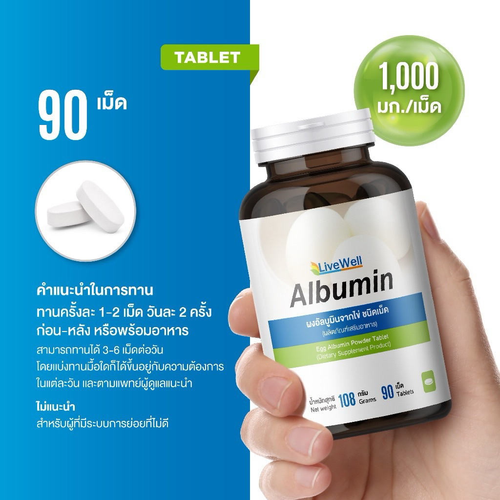 LiveWell Albumin Tablet อัลบูมินจากไข่ขาวชนิดเม็ด 90 เม็ด (1,000mg)
