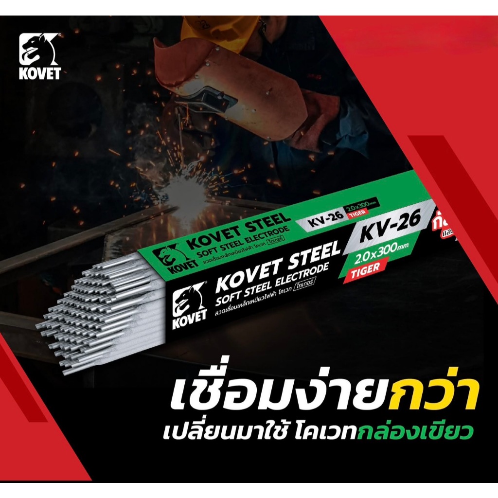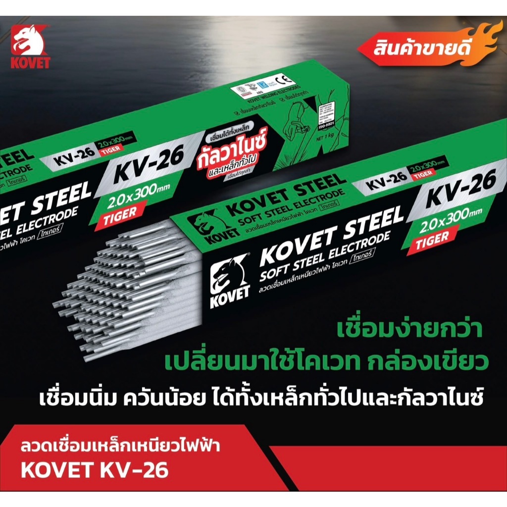 ลวดเชื่อมเหล็กเหนียว ลวดเชื่อมกัลวาไนซ์ Kovet โคเวท-KV26 (ไทเกอร์) 2.0x250 mm ห่อ 1 กิโลกรัม และ แบ่งขาย