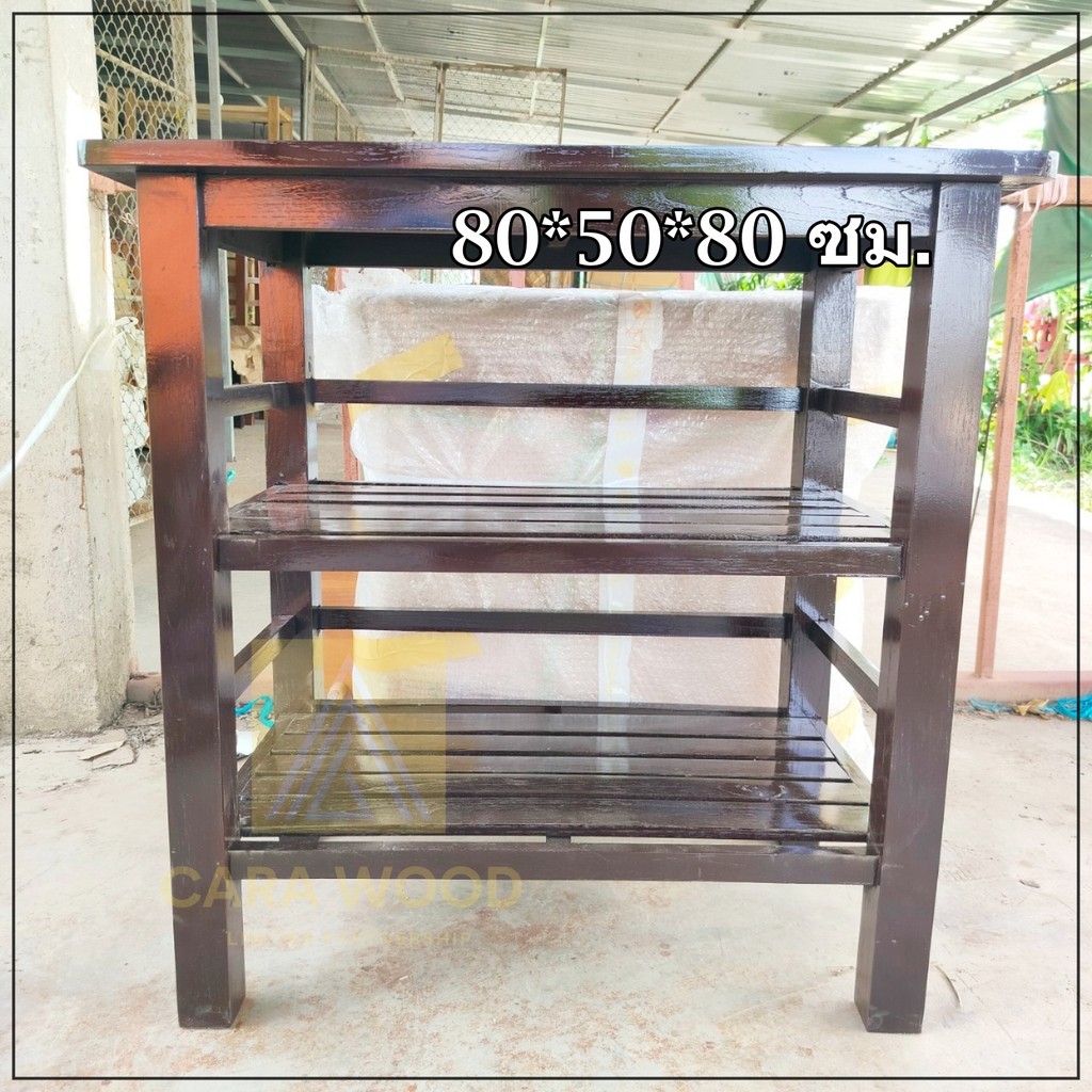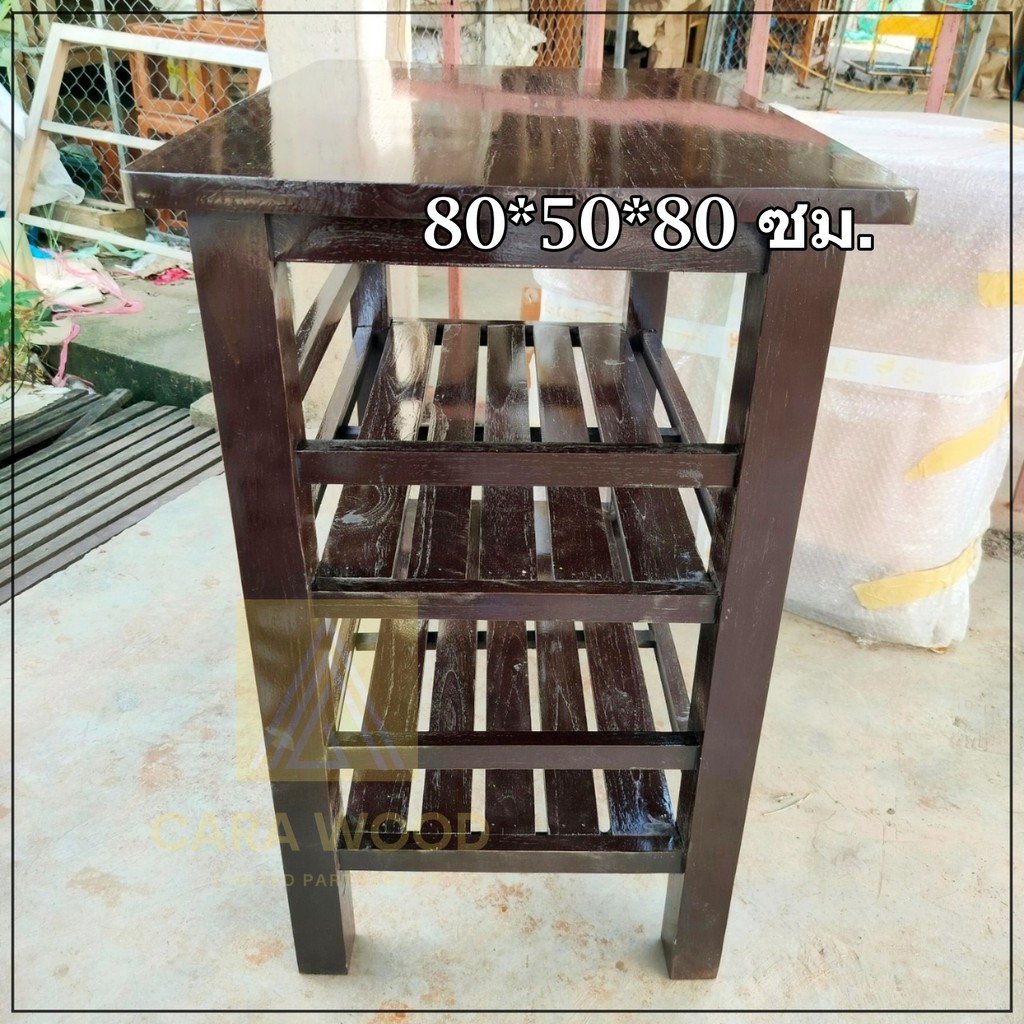 ✅ส่งฟรี💢 CR.W โต๊ะวางของไม้สัก โต๊ะวางเตาแก๊ส 3 ชั้น 80*50*80 ซม. โต๊ะวางทีวี วางเตาอบ โอ๊คเข้ม