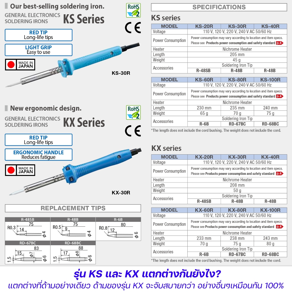 Goot KS/KX-100R หัวแร้งบัดกรี 100W (equiv.) Made in Japan | ปลาย BC แหลมตัด 1.5มม | ทนสุดๆ หัวแร้ง KX-100R KS-100R