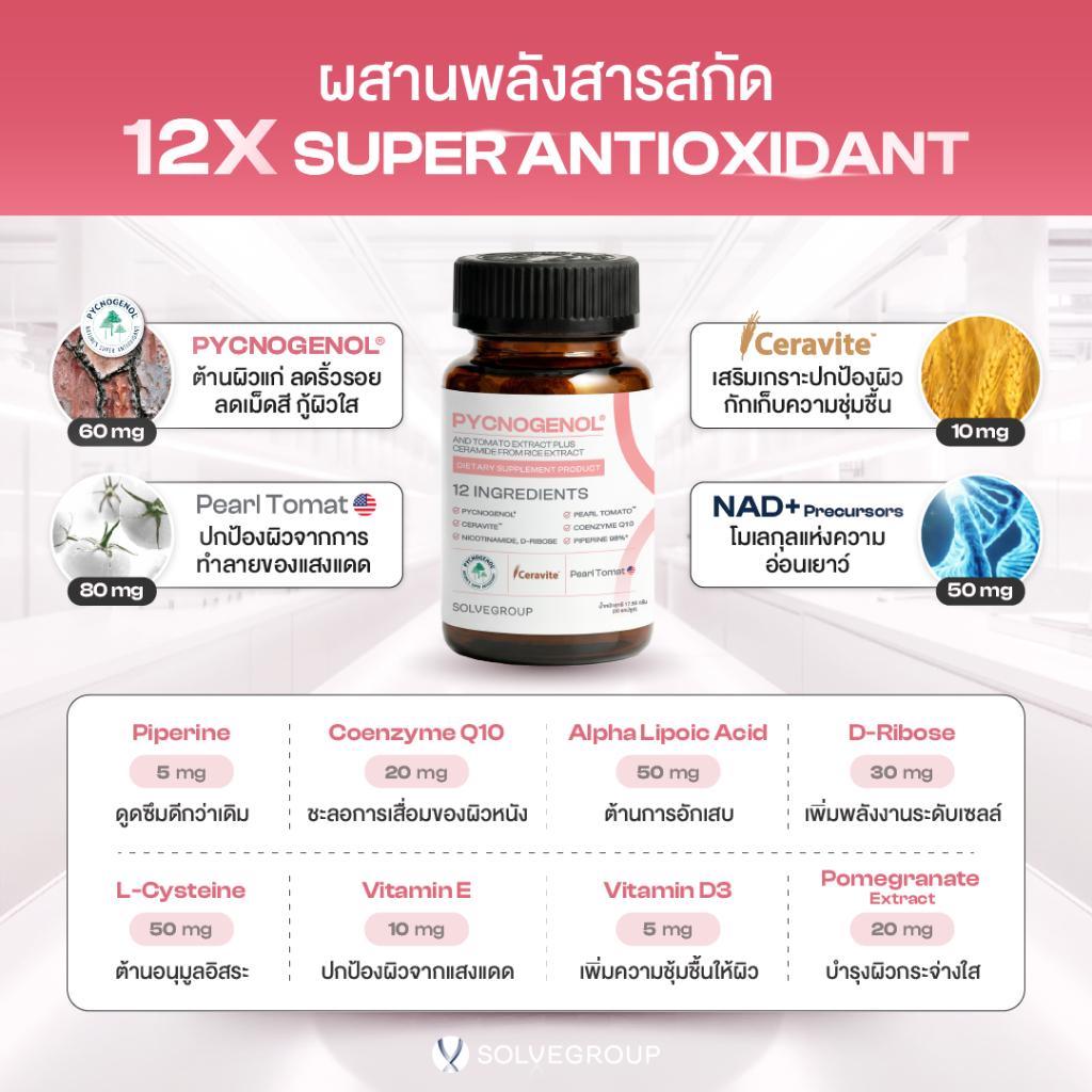 วิตามินผิว Solve Pycnogenol And Tomato Extract Plus Ceramide From Rice Extract 30 capsule