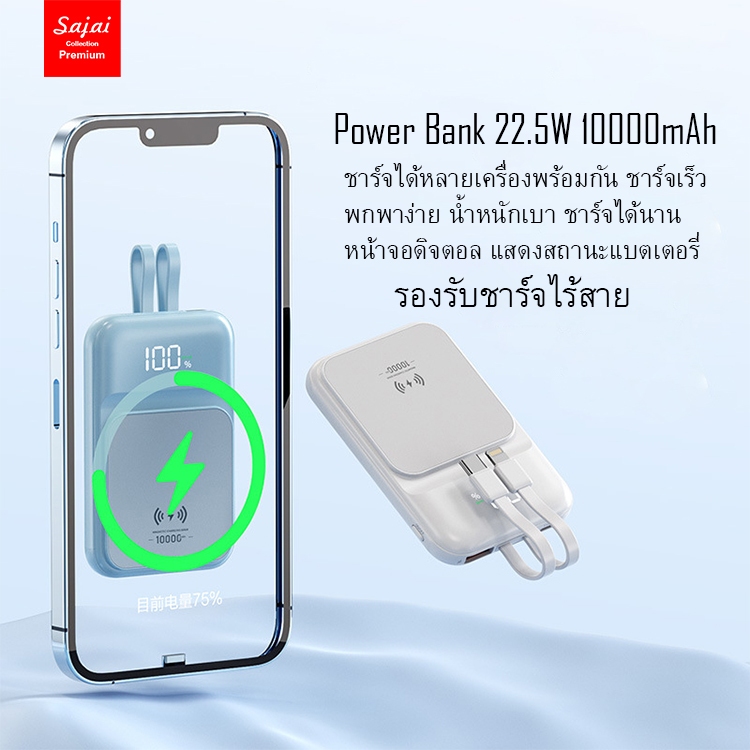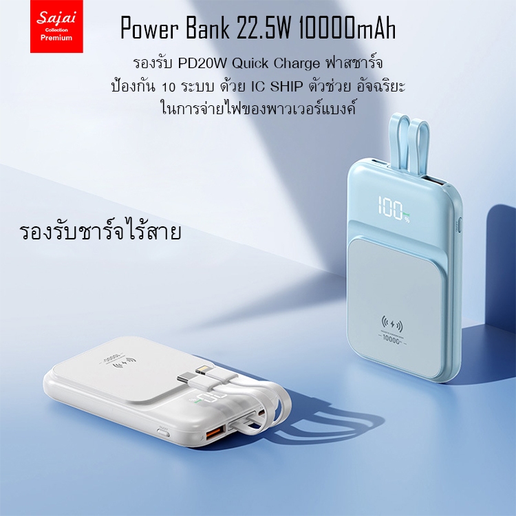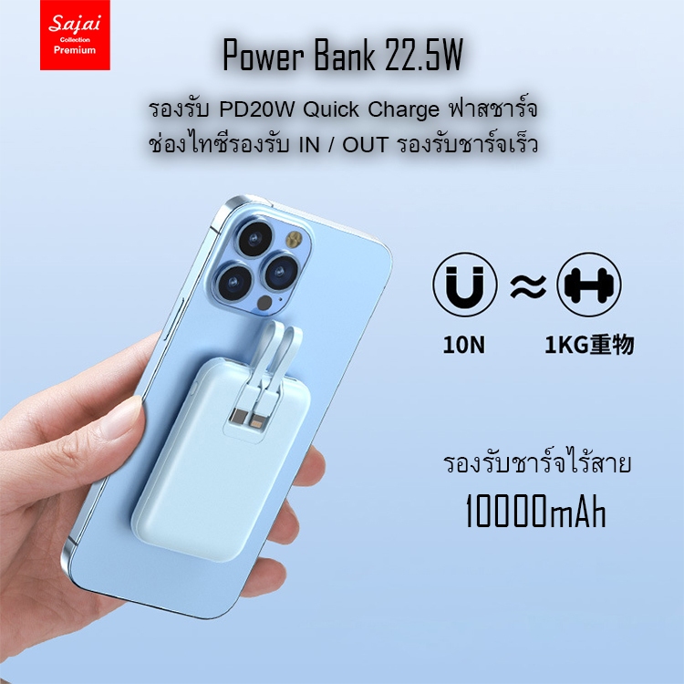 ของแท้100% Yoobao SAJAI สะใจ 20W-PD 20000mAh(ฟรีซองกันน้ำ)ชาร์จไร้สาย15W(แบบแม่เหล็ก)สายในตัว2สาย