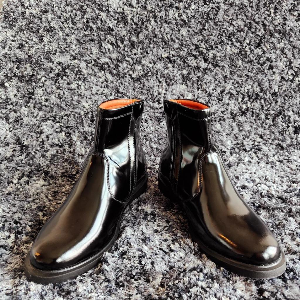 ฮาฟ รหัส BKB1 หนังขัดมันเกรดพรีเมียม ซิปเดี่ยว สูง7นิ้ว หนังวัวแท้ ทรงหัวแหลมแนะนำใส่+1ไซส์
