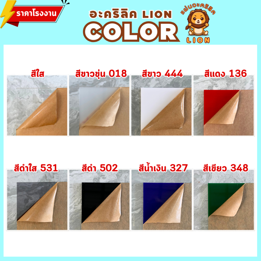 แผ่นอะคริลิค SIZE 30 x 60 cm. หนา 2–10 mm มีสีใส ขาว ขาวขุ่น ดำ แดง น้ำเงิน เขียว ดำใส - L3060