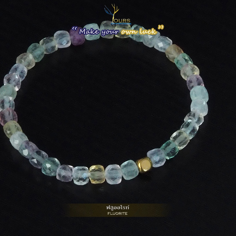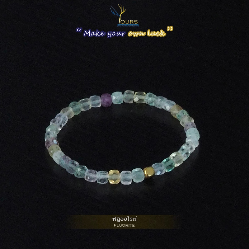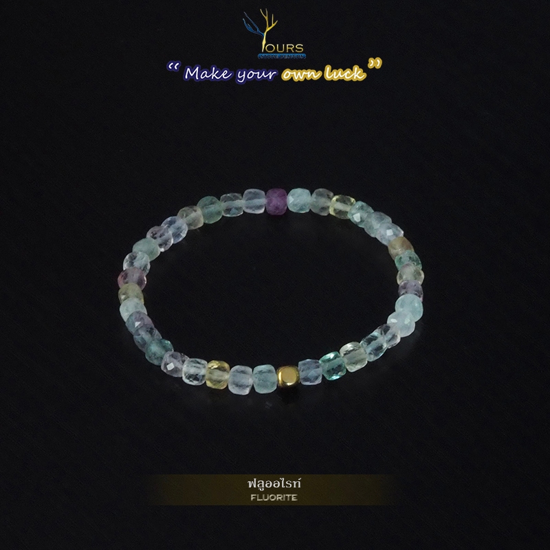 กำไลหิน " ฟลูออไรต์ " แท้ 100% ขนาด 4mm ทรงลูกบาศก์
