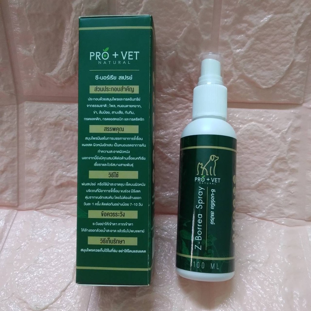 Pro+Vet Z-borrea Spray สเปรย์ สมุนไพร สูตรสำหรับโรคเรื้อน ผิวหนังอักเสบ 100 ml