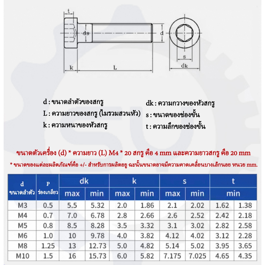 【Senyan】น็อตหัวจมบาง สกรู หัวจม สแตนเลส 304 เกลียวมิล ตลอด M5 M6 M8 M10 Hexagon Socket Head Cap Screws Low Head