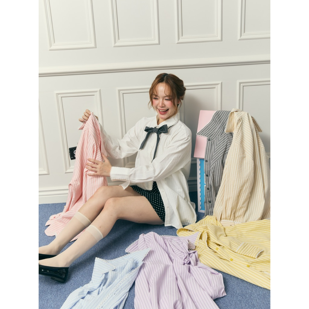 พร้อมส่ง / ส่งด่วน [เหลือ 6xx.- ลด 20% เก็บโค้ด"ร้านโค้ดคุ้ม"] Basicnotbasics - Crumble shirt เสื้อเชิ้ตผ้าไม่ต้องรีด