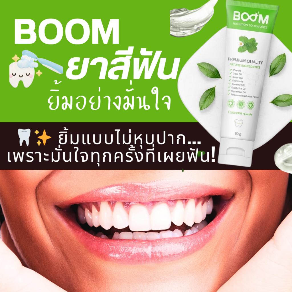 Boom Pro ยาสีฟันเจล 80g ฟลูออไรด์1500ppm ฟันสะอาด ลดกลิ่นปาก โปร 1แถม1 + Ebook ฟรี