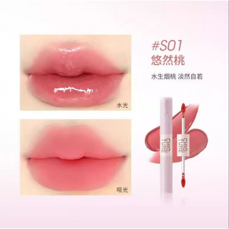CHIOTURE Double-Ended Dual-Effect Lip Glaze ลิปสติก Matte Lip Mud Hydrating Mirror ลิปกลอส