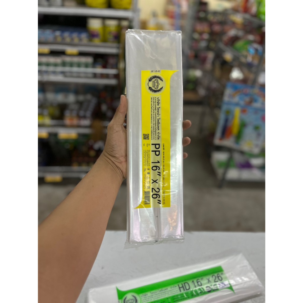 ถุงตรามงกุฎ 16x26 นิ้ว ถุงแพ็คเนื้อ/ผักผลไม้/ถุงใสแพ็คสินค้าอาหารแห้ง PP,LL,HD 500 กรัม