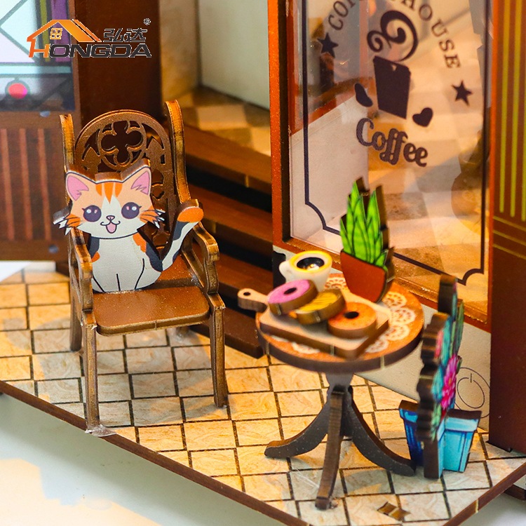 Cafe Cat mini คาเฟ่เหมียว Book Nook DIY รุ่น Cafe Cat กล่องคั่นหนังสือ ที่กั้นหนังสือ โมเดลไม้จิ๋ว