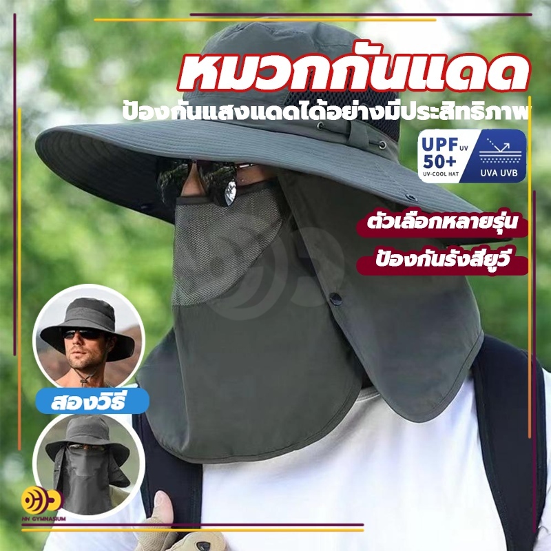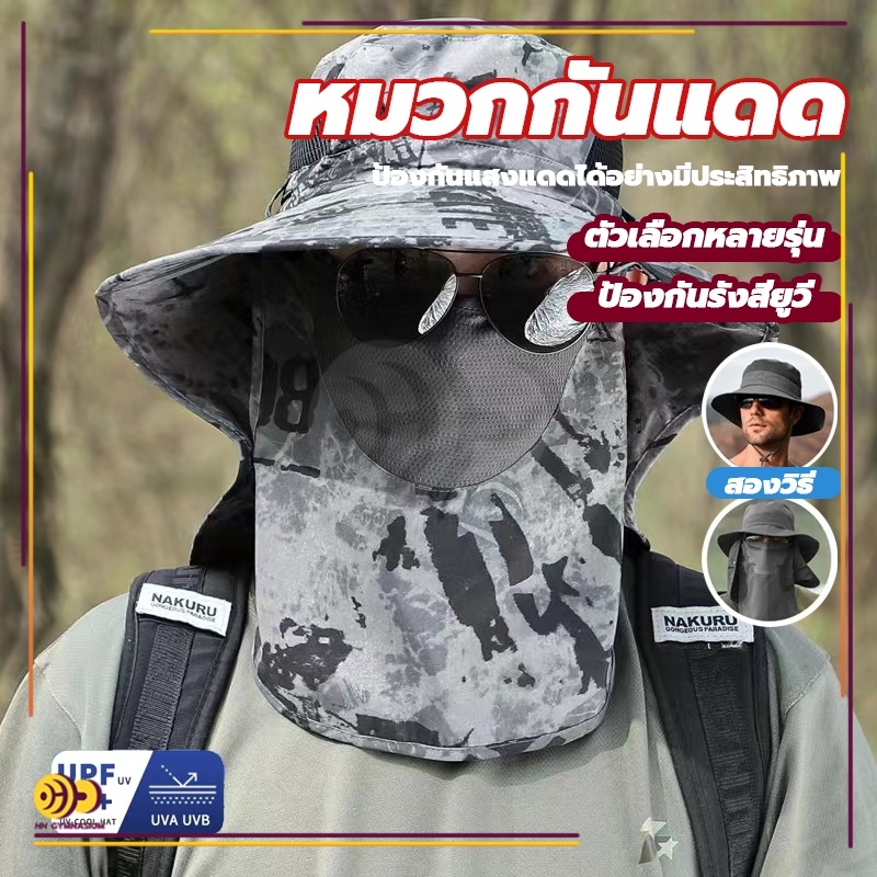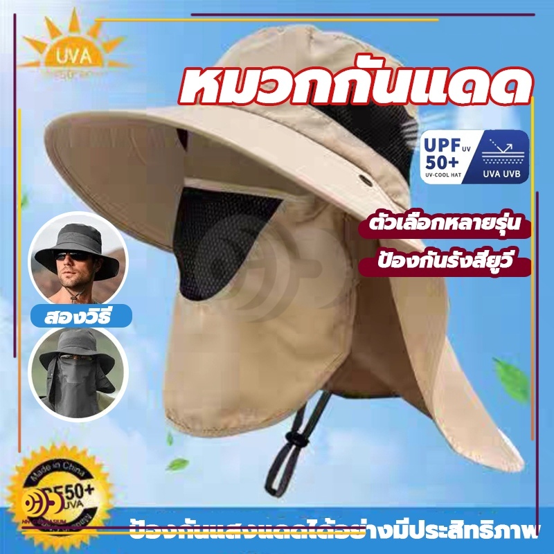 หมวกกันแดดแท้ 100% หมวกกันแดดชาย กันแดด UPF50+ หมวกปีกกว้างสำหรับฤดูใบไม้ผลิและฤดูร้อน กันร้อน แยกชิ้นได้