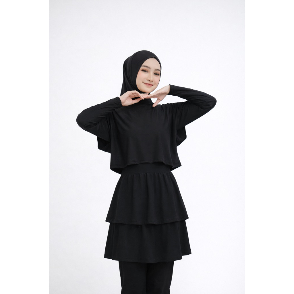 ZAWA Stella Muslimah ชุดว่ายน้ําตารางสีดํา - ชุดว่ายน้ํามุสลิมแบบสปอร์ต Siyari สําหรับวัยรุ่น