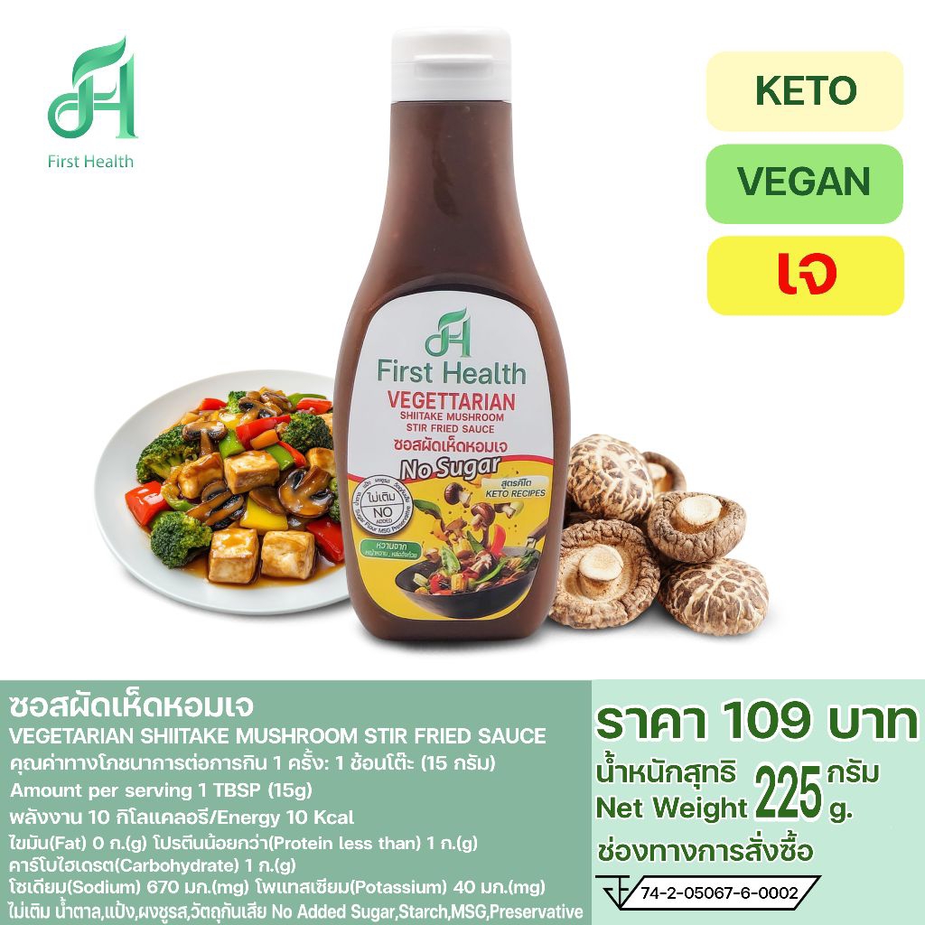 First Health ซอสผัดเห็ดหอมเจ สูตรคีโต (Vegetarian Shiitake Mushroom Stir Fried Sauce)