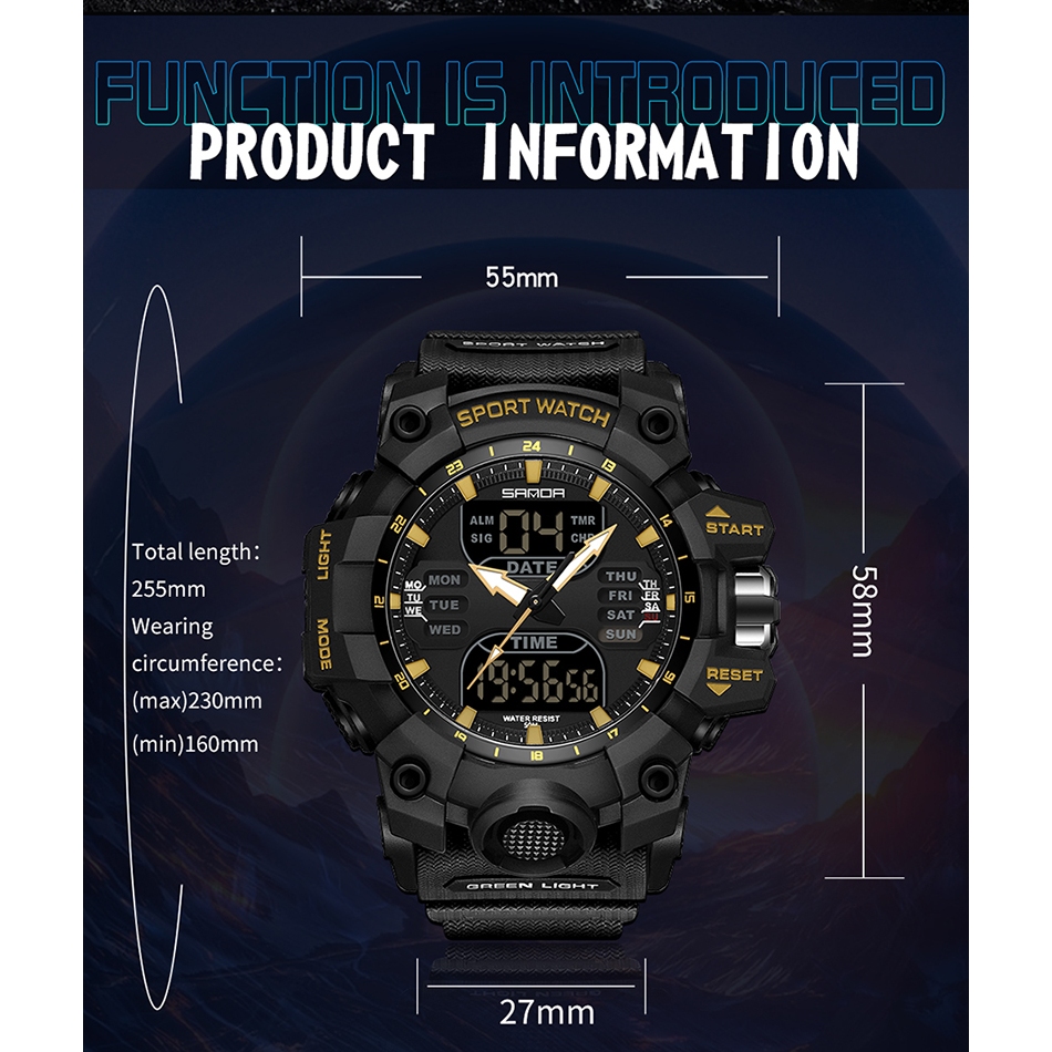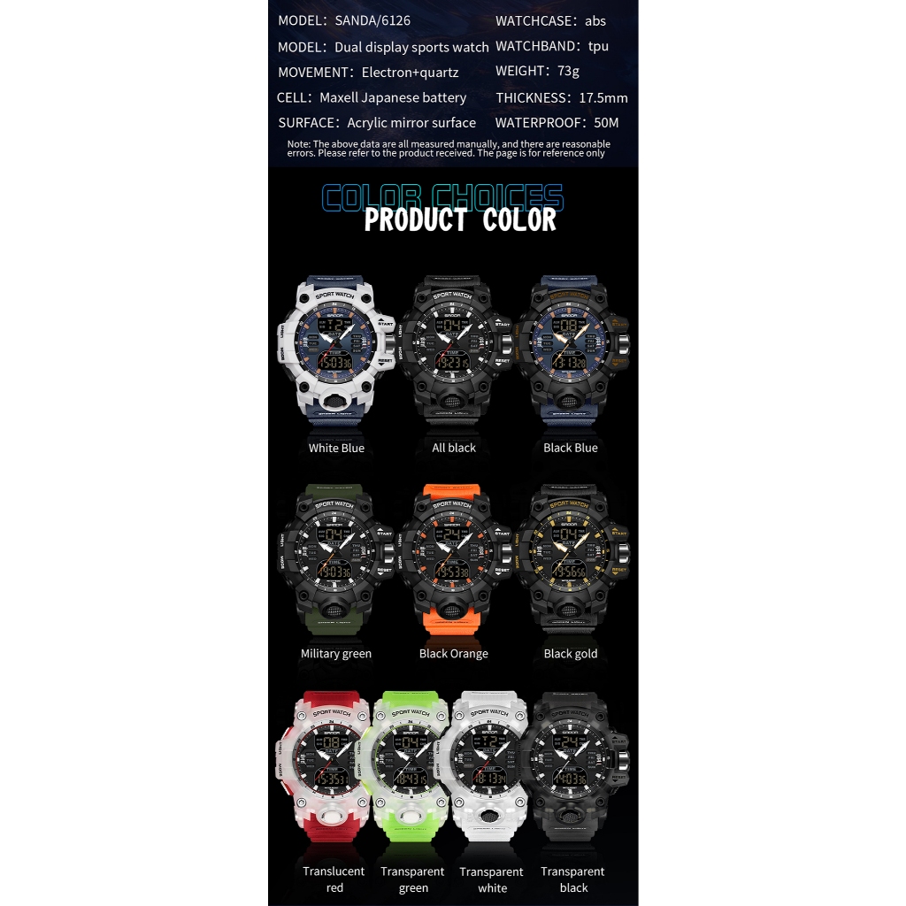 ซานดา 6126-3/ใน คลังสินค้า อุตสาหกรรมทหารคุณภาพแนวโน้มกันน้ําและ ต่อต้าน หยด มัลติฟังก์ชั่นนาฬิกากีฬากลางแจ้ง
