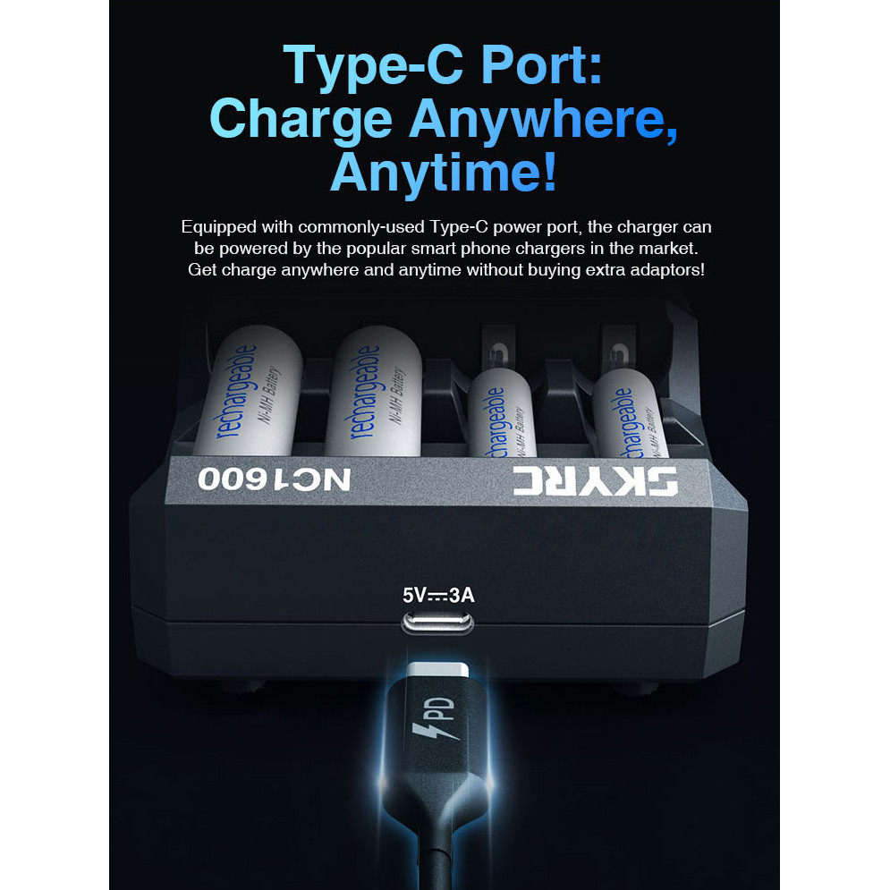 เครื่องชาร์จแบตเตอรี่ SKYRC NC1600 พร้อมฟังก์ชั่น Analyzing สําหรับ AA/AAA Ni-MH-Nichrome 5-7 ชาร์จแบตเตอรี่ผสม