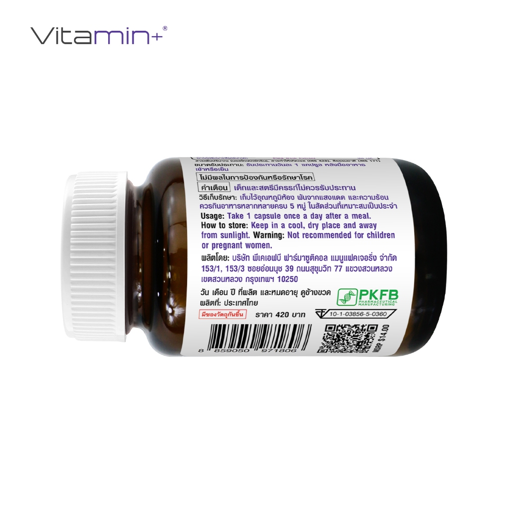 [แพ็ค 3 ขวด] เกรปซีด พลัส ไพน์บาร์ค วิตามินพลัส Grape Seed plus Pine Bark Vitamin plus สารสกัดจากเมล็ดองุ่น ซิงค์ Zinc