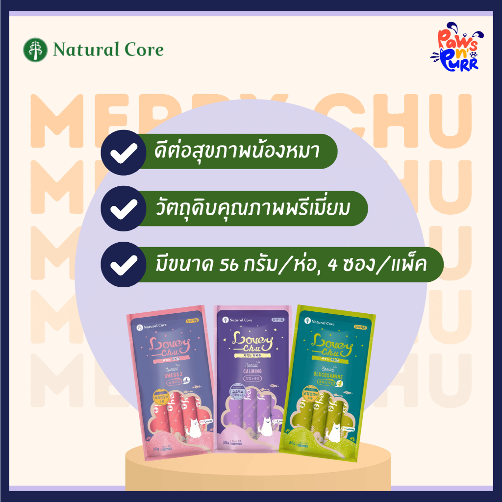 Natural Core Lovey Chu ขนมสุนัขเลีย Premium Grade (1ห่อ 4 ซอง/56g)