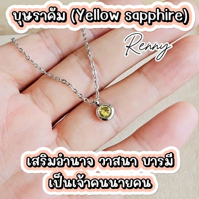 🔥บุษราคัม (Yellow sapphire) Renny pendant จี้พลอยมินิมอล 4 มิล พร้อมสร้อยคอ ไม่ลอก ไม่ดำ ไม่แพ้