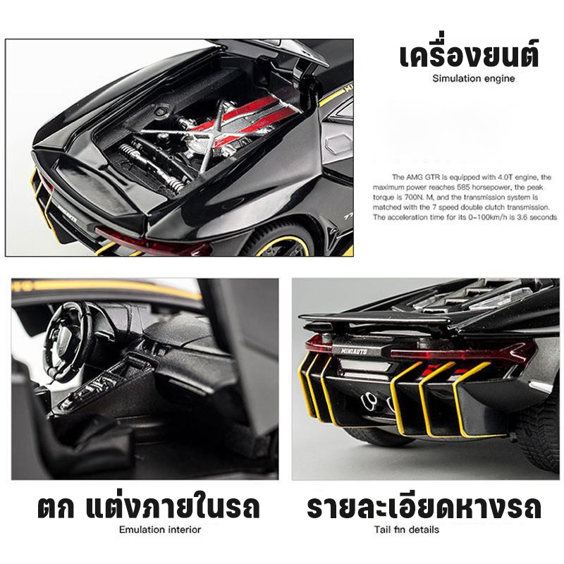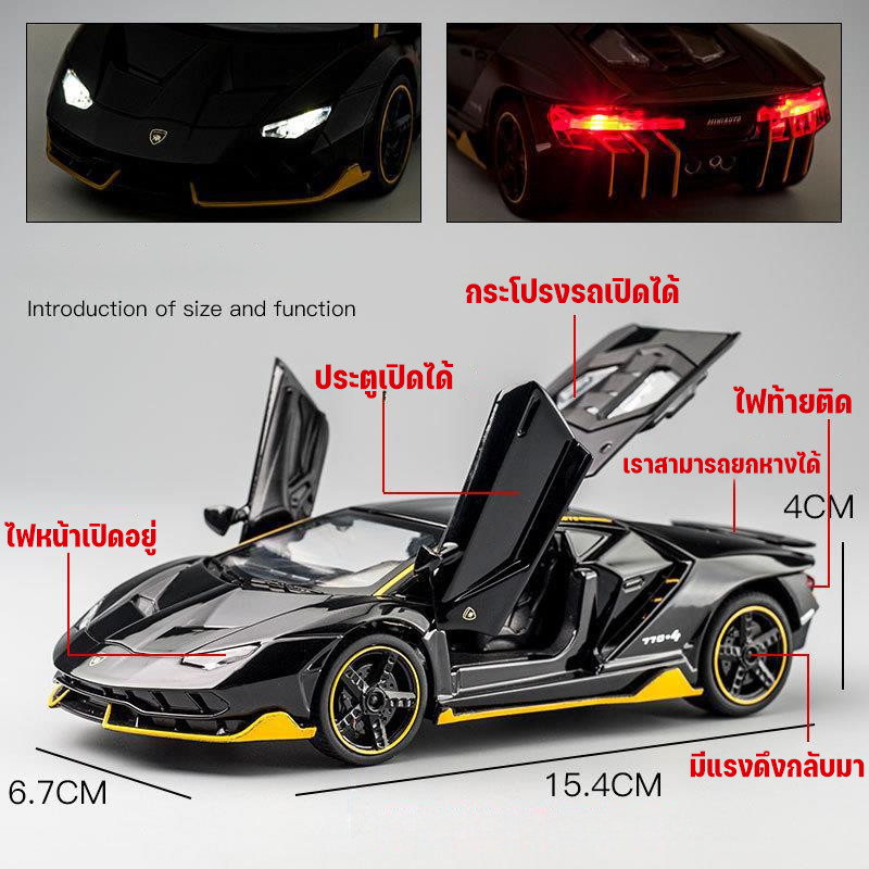 COD รุ่นรถแข่ง สเกล 1/32 แลมโบ มีไฟหน้า-ไฟท้าย ปิดปิดประตูได้ ของขวัญสําหรับเด็กผู้ชาย โมเดลรถเหล็ก