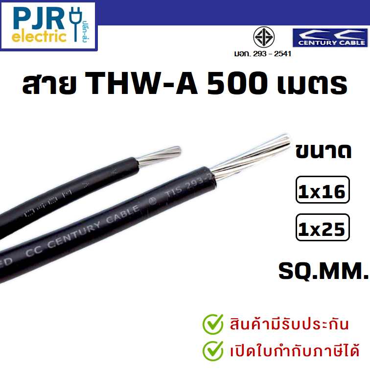 *PJRW*มีขายส่ง *ยาว 500 เมตร* สายมิเนียม THW-A เบอร์ 16 , 25 มอก.เต็ม รุ่น สมอ.รับรองมาตรฐาน ยี่ห้อ CENTURY เซนจูรี่