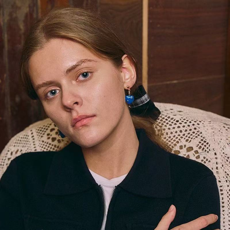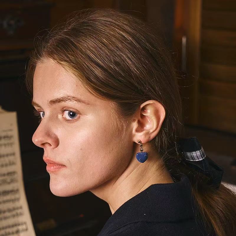 Klein Blue Heart ต่างหู Gold Star จี้คริสตัลสีแดงผู้หญิงแฟชั่นเครื่องประดับปาร์ตี้