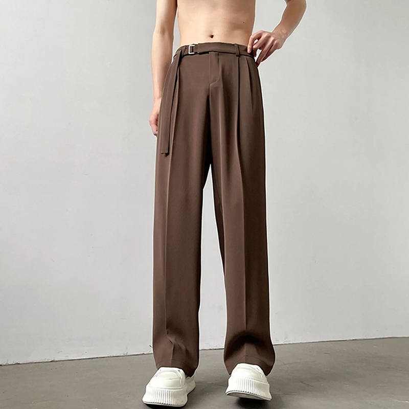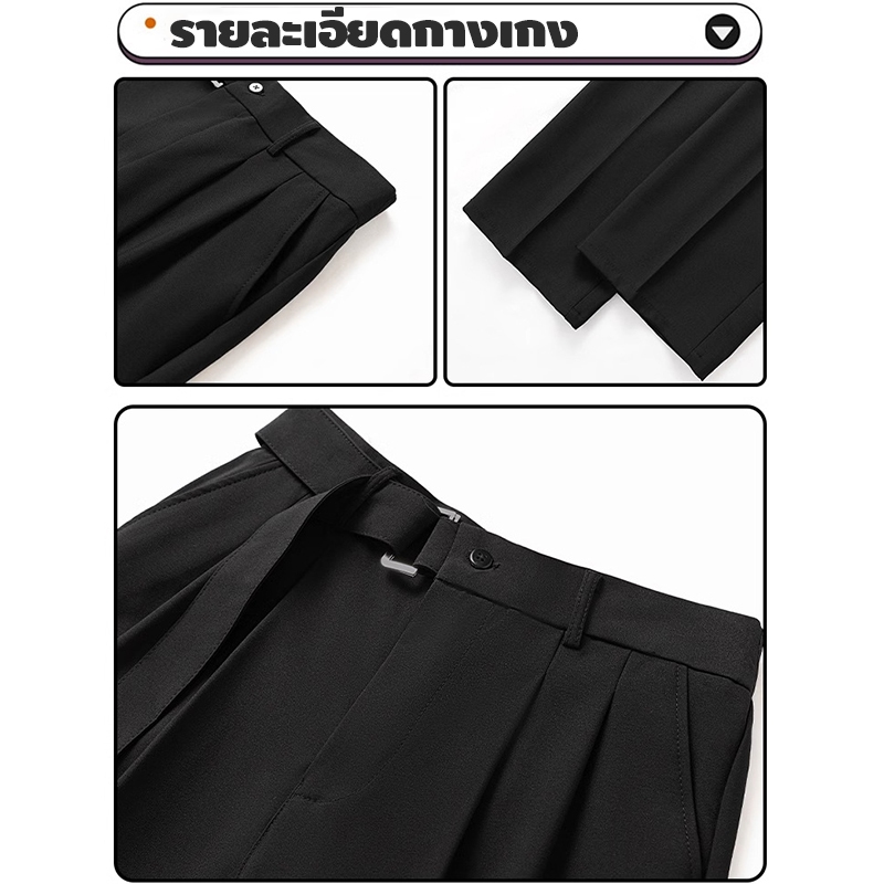 กางเกงลำลองผู้ชาย กางเกงสูทผู้ชาย ทรงหลวม มีจีบด้านหน้า มีห่วงเข็มขัด เหมาะสำหรับทั้งใส่ทำงานและใส่ลำลอง