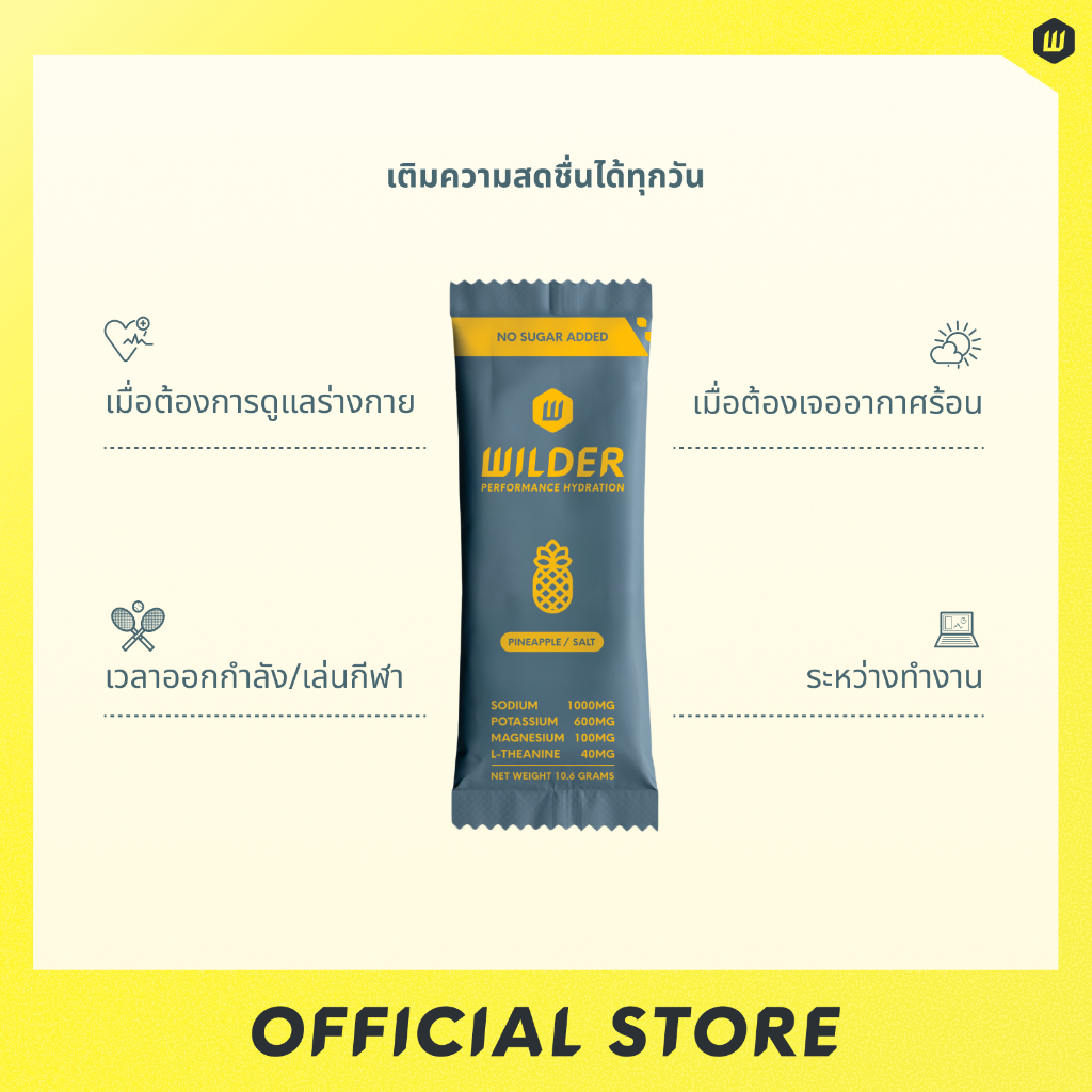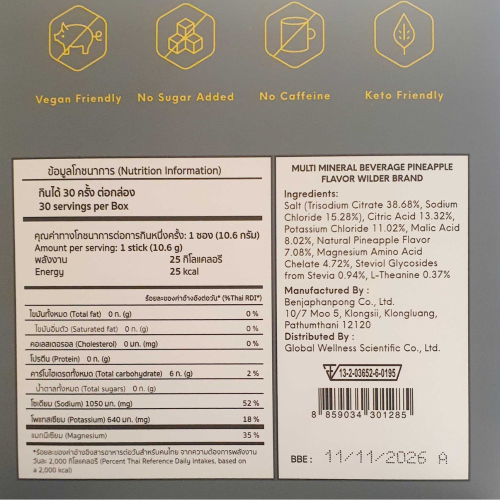 (แพ็คคู่ขวดน้ำ) WILDER Electrolytes (30 Pack) | เกลือแร่แบบผง สูตรไม่เติมน้ำตาล รสสัปปะรด Fast Hydration