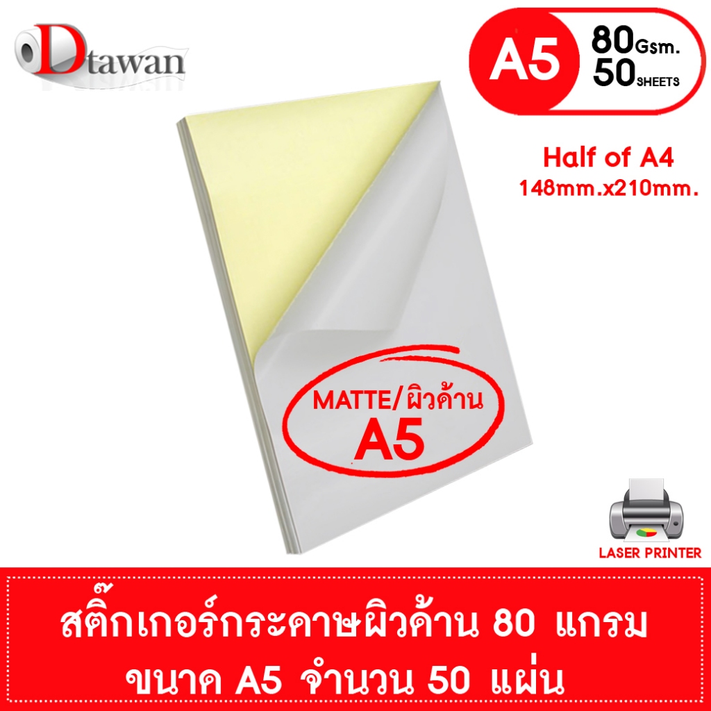 DTawan สติ๊กเกอร์กระดาษ A6 A5 ผิวด้านและผิวมัน สำหรับเครื่องพิมพ์เลเซอร์ พิมพ์ฉลากติดสินค้า ลาเบล ฉลากบาร์โค๊ต ฯลฯ