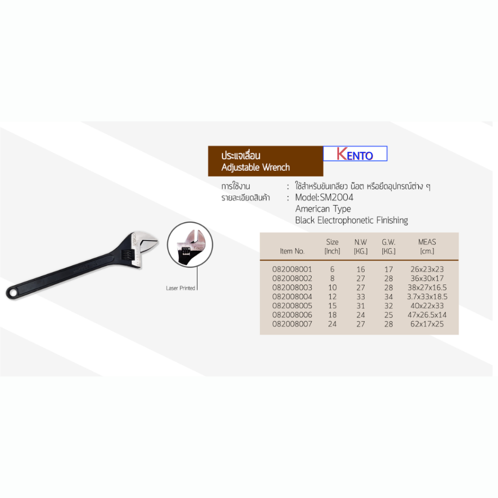 ประแจเลื่อน ขนาด 6-18นิ้ว KENTO กุญแจเลื่อน พร้อมส่งทันที