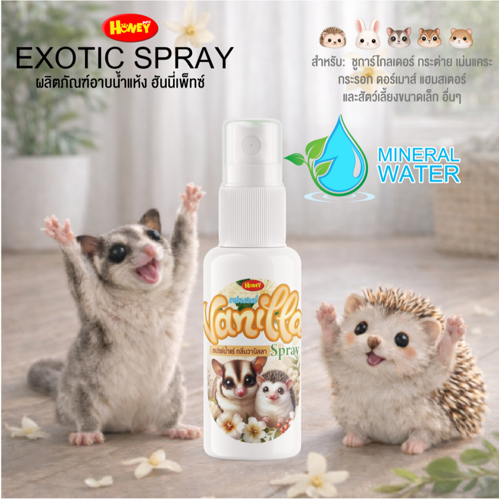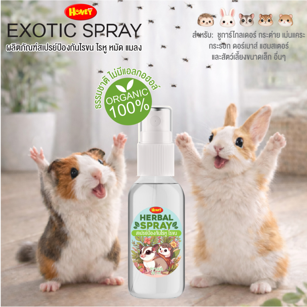 HoneyPetzสเปรย์ลดกลิ่น60มล.สำหรับสัตว์เลี้ยง ฉีดได้ทุกวันไม่มีแอลกอฮอล์ มีหลายสูตรให้เลือกในตระกร้า