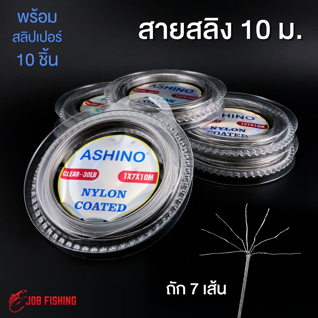 สายสลิง Ashino ยาว 10 ม. (1x7) หุ้มไนล่อน พร้อมสลิปเปอร์ 10 ชิ้น สายสลิงตกปลา