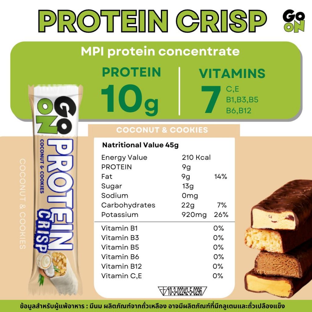 (สินค้าของแถม) GO ON โกออน ขนมผสมเวย์โปรตีนบาร์ รสพิสตาชิโอ ขนาด 50 กรัม จำนวน 2 ชิ้น