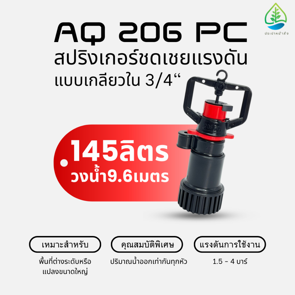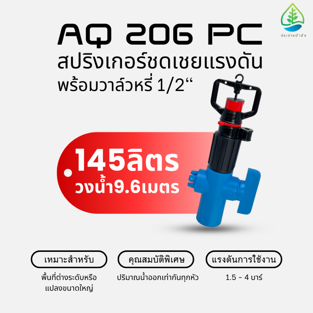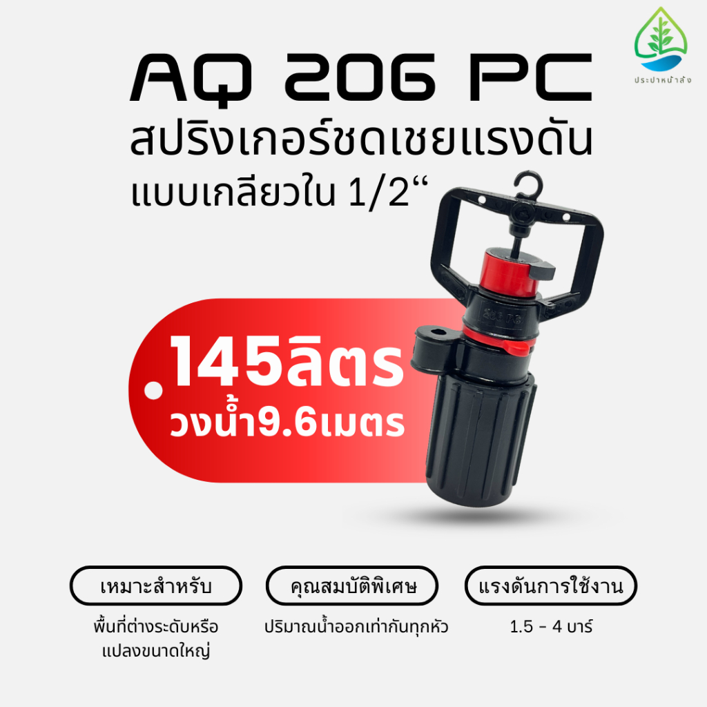 (แพ็ค 5,10 ตัว) AQ 206 PC สปริงเกอร์ชดเชยแรงดัน 145ลิตร วงน้ำรัศมี 4.8เมตร แบบเกลียวนอกและเกลียวใน ขนาด 4 และ 6หุน