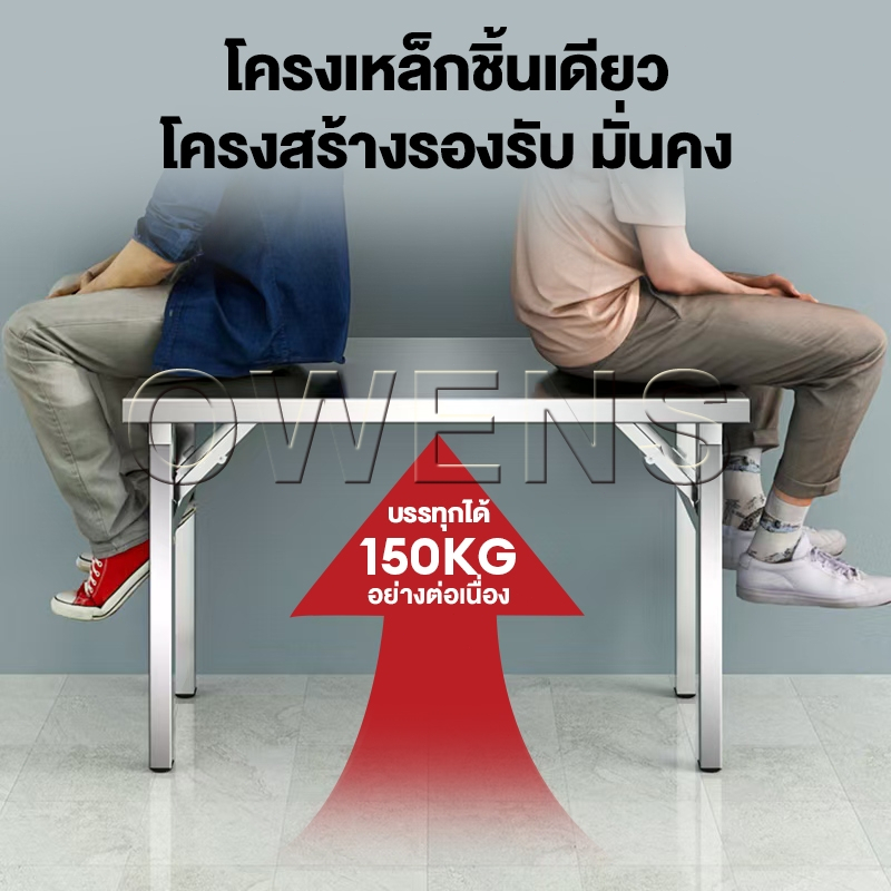 Owens💥โต๊ะพับ 120/100/80CM 304โต๊ะพับสแตนเลส โต๊ะยาว พกพาได้ รับน้ำหนักได้800KG (รุ่นสูง 75cm)